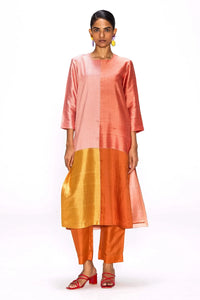 A colour-block kurta in handwoven silk featuring a structured neckline and a contrast selvedge detail at the back. The kurta is lined for a comfortable fit and longevity.