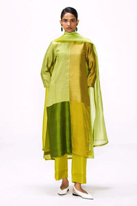 Fabric- Handwoven Silk Color- Greenery Components- 3 Product Code- SVEMEDI25PFCOLOURBLOCKKURTAGREENERYSET