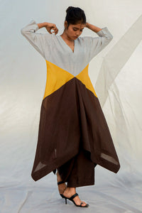 Composition: Chanderi Color: Grey,Yellow and Brown Fit: Fit and Flare Product Dimension: 50" Components: 2 Product Code: SVEBENNT03PSMAT