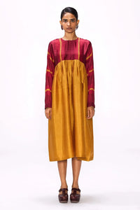 Fabric- Handwoven Silk Color- Ochre Components- 1 Product Code- SVEMEDI25PFCOLOURBLOCKDRESSOCHRE