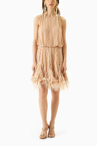 Haze Dress Is Adorned With Sequin Embroidery & Pearl Fringes And Feather Trim At The Hem