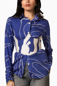 A structured under-bust corset constructed using tuning, fusing, and lining.