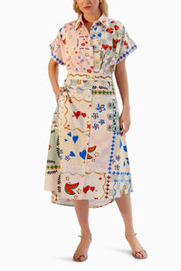 Introducing the Coral Midi that comes in two captivating variations: Boardgame and Forest, both featuring vibrant placement prints that bring a playful and nature-inspired charm to the design. Crafted for both style and comfort, this dress features an elasticated waist that offers a flattering fit while ensuring ease of movement.