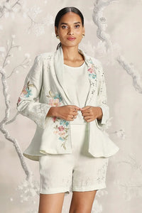 Inspired by the emblem of ceremonial festivities and the beauty that surrounds us, the resplendent range of Corsage on luxurious linen springs to life with delicate blooms emblazoned through intricate silk thread embroidery and finished with a decadent layer of gold that gleams to the light- elevating your style with an elegance that you richly deserve.