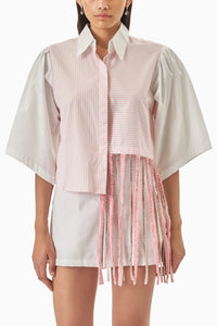 Add a playful yet polished touch to your wardrobe with the White and Pink Stripe Cotton Shirt with Tassels. Made from breathable, lightweight cotton, this shirt features a fresh white and pink stripe pattern that exudes effortless charm. The half sleeves offer relaxed comfort, while the delicate tassel accents bring a fun, bohemian twist to the classic silhouette. Perfect for casual days or a stylish weekend look, it combines ease and elegance in one standout piece.