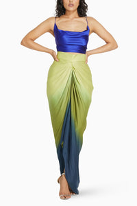 Draped in a silk satin, this Cowl Top is crafted with a cowl neckline and a completely open back giving it the right amount of drama. Delicate straps hold the piece perfectly on your body. Pair it up with our draped saris for that extra flair or a simple pair of jeans.