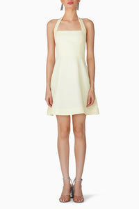 Experience effortless charm in the Bellina Dress. Crafted from luxurious banana crepe, this mini dress features a sophisticated square halter neckline and a subtly fitted bodice that flares into a flattering A-line skirt. The smooth, plain fabric in a delicate ivory shade offers a clean and timeless aesthetic, making this dress a versatile choice for warm-weather occasions and elegant evenings alike.