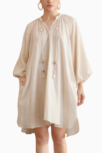 Featuring Cream Hand Braided Tassels Tier Dress by Nikasha from Garden Of Eden Collection. Elevate your style with tier dress accentuated by hand braided tassels details around the neckline and kota doriya tier at the bottom.