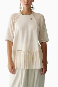 Cream Handwoven Jamdani Cotton Hi-Low Top