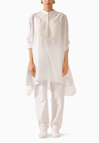Featuring the Cream Jamdani Polka Kaftan Top With Pants by Nikasha from its Jamdani Collection. This sophisticated set pairs a cream Jamdani and chanderi kaftan top with delicate polka embroidery alongside matching chanderi pants—crafted in soft cotton for timeless elegance.