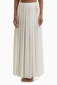 Morgana is a luxurious maxi skirt made from the finest quality Chiffon. It features double layers of fabric and romantic pleating details enhanced by a front slit. This skirt offers a romantic, flowing silhouette that combines comfort with glamor, making it an ideal choice for holidays and festive occasions. Pair with the Morgana pleated or buckle top to complete the look. Scarf included only on purchase of set.