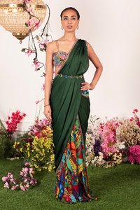 Introducing our stunning crimson saree set, perfectly paired with an embellished strap corset for a contemporary twist on traditional elegance. The rich crimson drapes beautifully, while the corset features intricate embellishments that enhance your silhouette. This ensemble is ideal for weddings or festive occasions, making a bold statement wherever you go