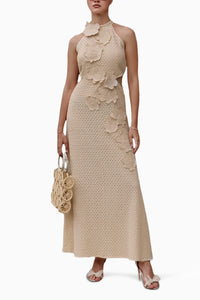 Crafted in premium quality cotton crochet fabric. Waistline cutouts and a side slit. 3D Applique flowers aesthetically placed.