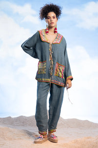 Composition- Top: Linen, Pant: Linen Color- Top: Teal Blue, Pant: Teal Blue Components- 2 Product Code- SVECAPIPAL14&PAL15