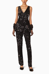 Introducing Shriya Som's tunic and pant co-ord set from the Chrysalis Collection, meticulously handcrafted with vibrant crystals and elevated with strategically placed fringes, creating a stunning, modern ensemble full of movement and sparkle.