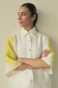 Featuring an elegant organza crystal shirt, this piece showcases a delicate double-layer organza design with a soft cotton lining for comfort. An intricately embroidered patch adorns the 3/4th sleeve, adding a refined touch to this graceful ensemble.
