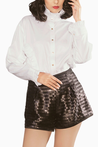Featuring Cynthia White Shirt by Chillosophy from Lovefool Collection. This shirt showcases a loose fit for ultimate comfort and movement, adorned with delicate ruffles for a feminine, romantic touch.