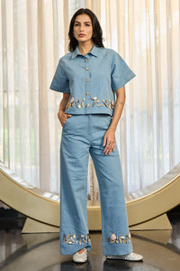 Classic blue denim meets modern tailoring in this versatile set, perfect for effortless style from day to night.