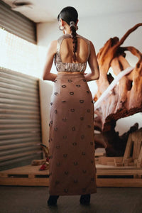 This skirt features bold D-ring embellishments and a stylish tie-up detail, adding a touch of modern flair to a classic design. Its flattering silhouette makes it a versatile piece, perfect for dressing up or down for any occasion.