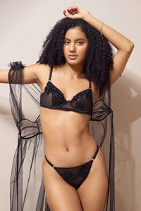 Make a bold statement with this stunning Embellished Black Bra and Thong Set. Featuring intricate embellishments and a timeless black hue, this set is designed to radiate luxury and confidence. The delicate hand-beaded details and flattering fit make it perfect for special occasions or when you want to feel elegant and glamorous.