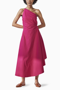 Featuring this hot pink poplin off-shoulder fit and flare silhouette is a heaven on Earth for any occasion.