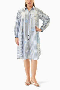 A cute A-line shirt dress with floral patch detailing that can be dressed up or down for different occasions. The floral patch adds a charming femineity to the outfit. Perfect for a casual day out or a semi-formal evening.