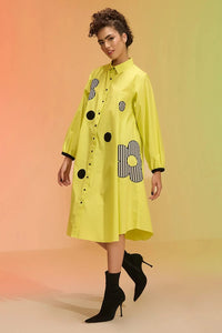 Featuring Daisy Yellow A-Line Shirt by Chilosophy's Queendom Collection, this charming dress features floral patch detailing and a flattering A-line silhouette. With full sleeves, side-pocket, metallic buttons, and an inspiring quote on the back, it's perfect for both casual and semi-formal occasions.