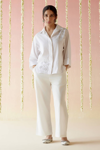 Introducing our Solid Embroidered Top and Pants ensemble, crafted from breathable and textured Khadi fabric for natural comfort. The top showcases exquisite embroidery that adds a touch of elegance while retaining the traditional charm of Khadi. Paired with Plain Khadi Pants, this set creates a perfectly coordinated look, blending classic style with a contemporary edge.
