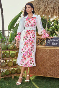 The Danna Midi Dress is your go-to for sun-soaked days, blending crisp tailoring with relaxed elegance. Featuring a classic shirt collar and voluminous ruffled full sleeves, it exudes effortless sophistication. A buckled belt cinches the waist for a flattering silhouette, while the button-down front and relaxed fit ensure all-day comfort. Designed with side pockets for convenience, it comes with a separate cotton voile slip for added coverage, making it perfect for everything from beach strolls to rooftop dinners.