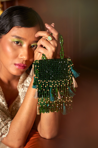 Composition- Suede Color- Emerald Green Details- Crystal Work Measurements(Inches)- 4.8 X 5 X 1.2 Components- 1 Product Code- SVEFOREFJ2283G