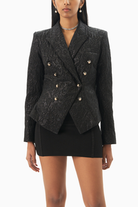 Featuring the Dapper Duo Jacquard Blazer, a fusion of classic and contemporary elegance. This double-breasted blazer exudes sophistication with its luxurious jacquard fabric. Perfect for those seeking a standout piece that seamlessly combines timeless charm with modern flair.
