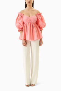 The Daya top features a ruffled puff sleeve, is slighty more fitted at
