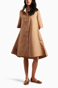 Crafted for unimposed styling, the December Shirt Dress is your go-to for a pause amidst the hustle. Easy to dress up or dress down with a simple front button panel, slip into a laid-back vibe and enjoy the comfort of movement at your will with it. Let loose for an errand run or throw on a belt for a yacht day on holiday.