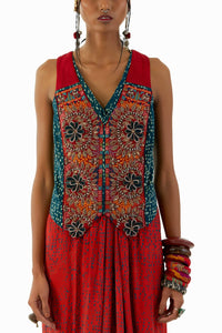 Experience elegance in the Deep Teal Bhumi Corset Blouse. The relaxed-fit Mul Mul corset blouse features a texture print, front embroidery, and tie-ups at the back. Zari Marodi and Resham embroidery add exquisite details to this sophisticated piece in captivating Deep Teal.