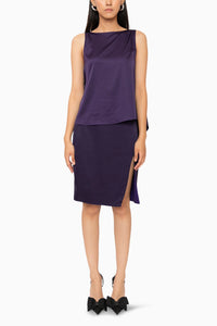 A sleek deep purple pencil skirt with a clean silhouette and side slit for ease and subtle allure. Crafted from structured yet comfortable fabric, it’s ideal for both professional and evening settings.