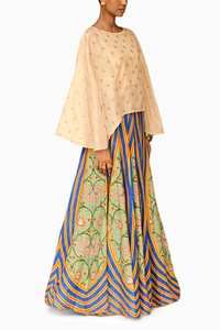 Composition- Silk Colour- Off White & Blue Embroidery- Hand Embroidered Length- Skirt: 44", Cape: 20" (front) and 25" (full) Components- 2 Product Code- SVESWATSVJ61516152