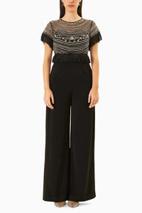 Elevate your style with this stunning black jumpsuit, a perfect blend of timeless elegance and modern charm. The bodice is intricately hand-embroidered with silver beads, creating a dazzling effect. Cascading fringes add a dramatic flair, making this outfit a standout choice for any special occasion. Super classy and evergreen, this jumpsuit is a must-have addition to your wardrobe.