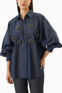 Anti fit shirt is designed in an easy regular fit with added stretch for comfort and features a sequence flower patches and smocking at the cuffs. This versatile piece is crafted from denim fabric with a classic button-through fastening. It's an easy-to-wear wardrobe staples that combine classic and contemporary styles.