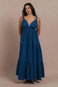 Effortlessly chic and full of character, the Denim Dream Dress is a maxi dress that combines timeless denim with intricate details. Featuring delicate embroidery, this dress adds a feminine touch to a classic fabric. The adjustable tie-up straps allow for a custom fit, while the addition of ghungroos brings a playful, melodic twist to your every step. Whether you're dressing it up for a night out or keeping it casual for a daytime outing, this dress offers comfort and style in one unforgettable piece.