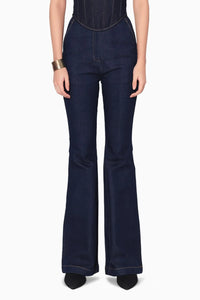 These classic flared denims in ivory offer a timeless silhouette with a modern twist. The clean, crisp color adds sophistication, while the flattering flare at the hem creates a vintage-inspired yet contemporary look, perfect for both casual and dressed-up occasions.