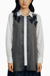 Denim Floral Panel Shirt