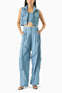 Make a statement with our Denim Fray 3-Piece Set, featuring a stylish bustier jacket and matching trousers. This eye-catching ensemble showcases trendy frayed edges, adding a modern edge to classic denim. Perfect for a night out or casual gatherings, this set allows you to express your unique style effortlessly.