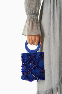 An exuberant bag that adds oomph to any look- DIANA is a bag that is both euphoric and elegant, made with soft & luxurious fabrics amplified with scintillating crystal beads, and commands attention in every room. It comes with a detachable part metal chain part fabric sling.