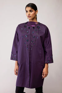 Make a chic statement this party season in our Diana coat! Intricately hand-embroidered tonal floral details add a distinctive character to an exquisitely crafted piece that can be worn on it own as a dress or paired with a dressy top and flared pants!