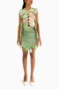 The Dianthus - Co-Ord Set is meticulously crafted in a lively green shade, complemented by contrasting pink and highlight pink details. The top features precise tailoring with striking pink accents that bring a playful twist to the design. Paired with a short skirt featuring organic style lines, this set is a beautiful blend of artistry and modern fashion. The contrast stitching emphasizes each line, showcasing the high level of craftsmanship that makes this piece truly unique.