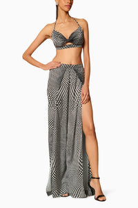 Featuring Digital Polka Bikini Co-ord Set by Siddartha Tytler from Checkmate Collection. Embrace vibrant style with the digital polka printed microfiber bikini and slitted pants. Adorning a playful polka dot pattern on smooth microfiber, this set combines a chic bikini with airy slitted pants for effortless, eye-catching summer fashion.