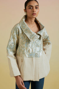 Our Dina Jacket features an elegantly structured stand-collar silhouette that beautifully frames the neckline and lends an air of refined sophistication.