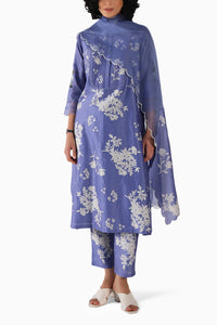 Featuring the Twilight Tunic in yuri print silk chanderi, paired with the matching pants and dupatta, creates a captivating ensemble that blends elegance with a touch of whimsy. This ensemble is a timeless addition to any wardrobe, offering a perfect blend of traditional craftsmanship and contemporary design.