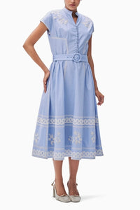 The Diva Light Blue Chambray Dress features a light-colored chambray fabric with an off-shoulder design and a flattering waist cutout. The midi length adds sophistication, making this dress perfect for casual outings or semi-formal events with a fresh, feminine touch.