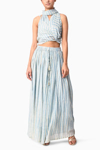 Crafted in soft, breathable fabric with intricate hand block prints, this 3-piece set features a flattering bralette, a flowy lined maxi skirt, and a versatile wrap top that can be styled multiple ways. Perfect for intimate festive gatherings with a touch of artisanal charm.